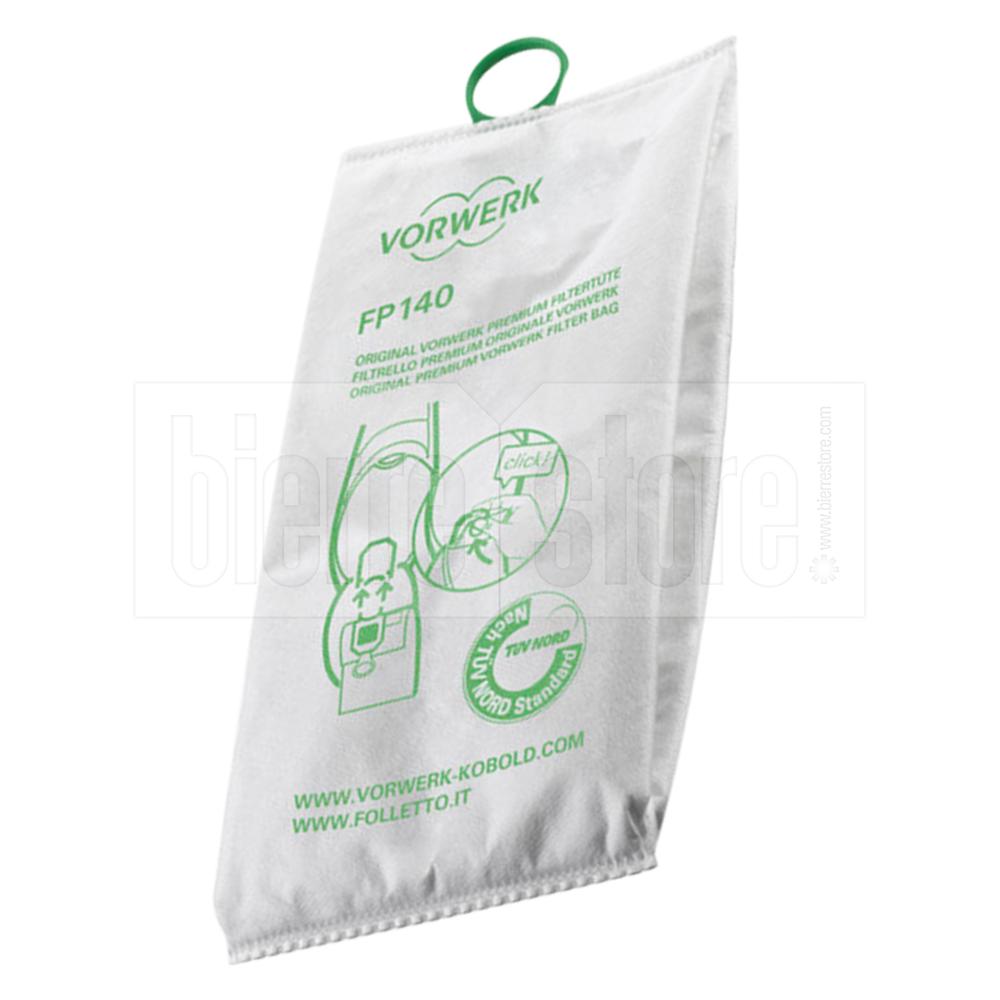 I sacchetti folletto FP 140 originali ,  garantiscono la piena potenza di aspirazione dell'aspirapolvere Folletto. I sacchi filtro hanno una capienza di 2,5 l e vengono prodotti con metodi ecocompatibili.
